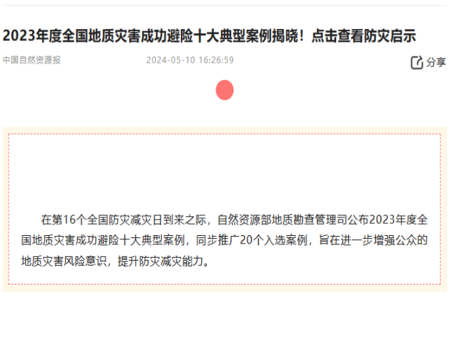 2023Äê¶ÈÈ«¹úµØÖÊÔÖº¦³É¹¦±ÜÏÕÊ®´óµäÐͰ¸Àý½ÒÏþ£¡